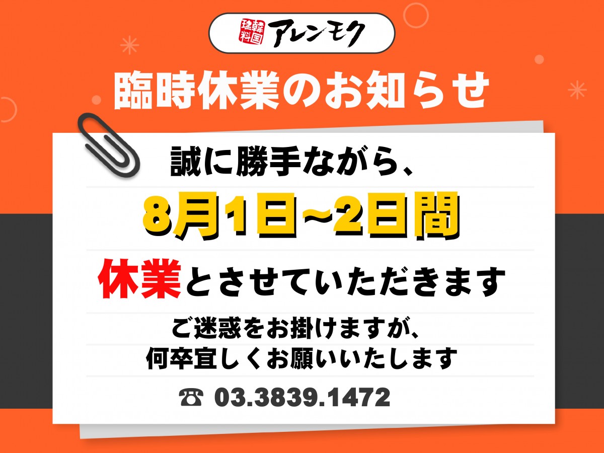 【臨時休業のお知らせ】