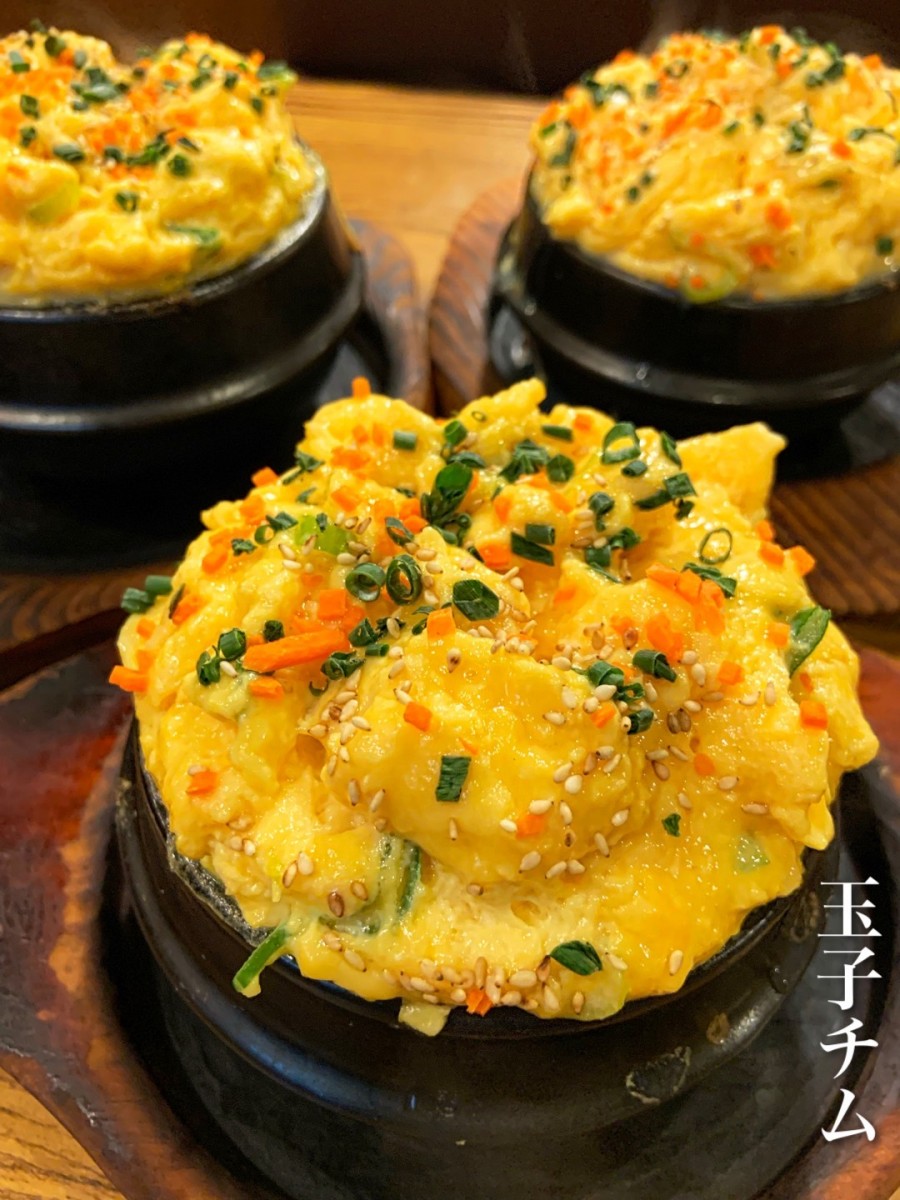 韓国風茶碗蒸しとも呼ばれる玉子チム!シンプルでやさしい味付けだから辛いものを食べる合間に丁度いいです!ふわっふわで見た目もかわいいから写真映えにもおすすめ!